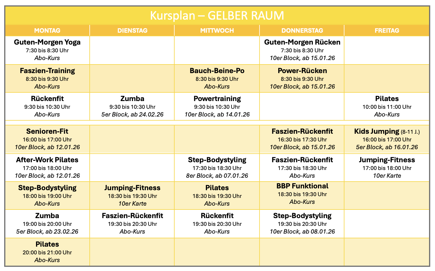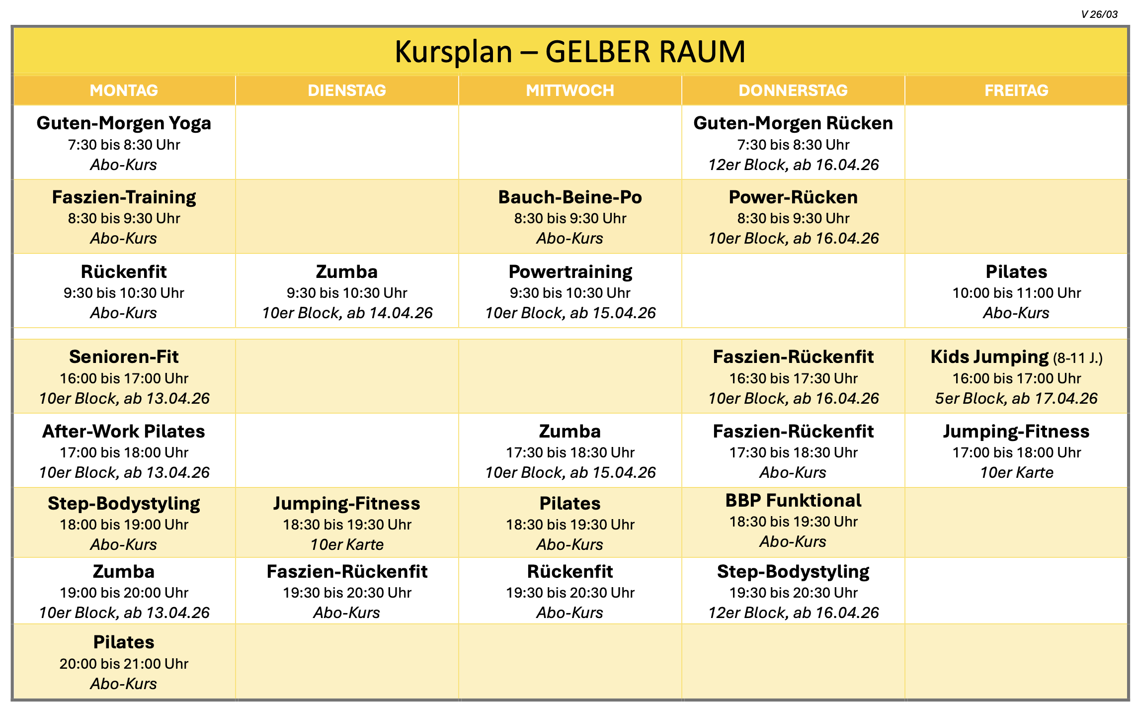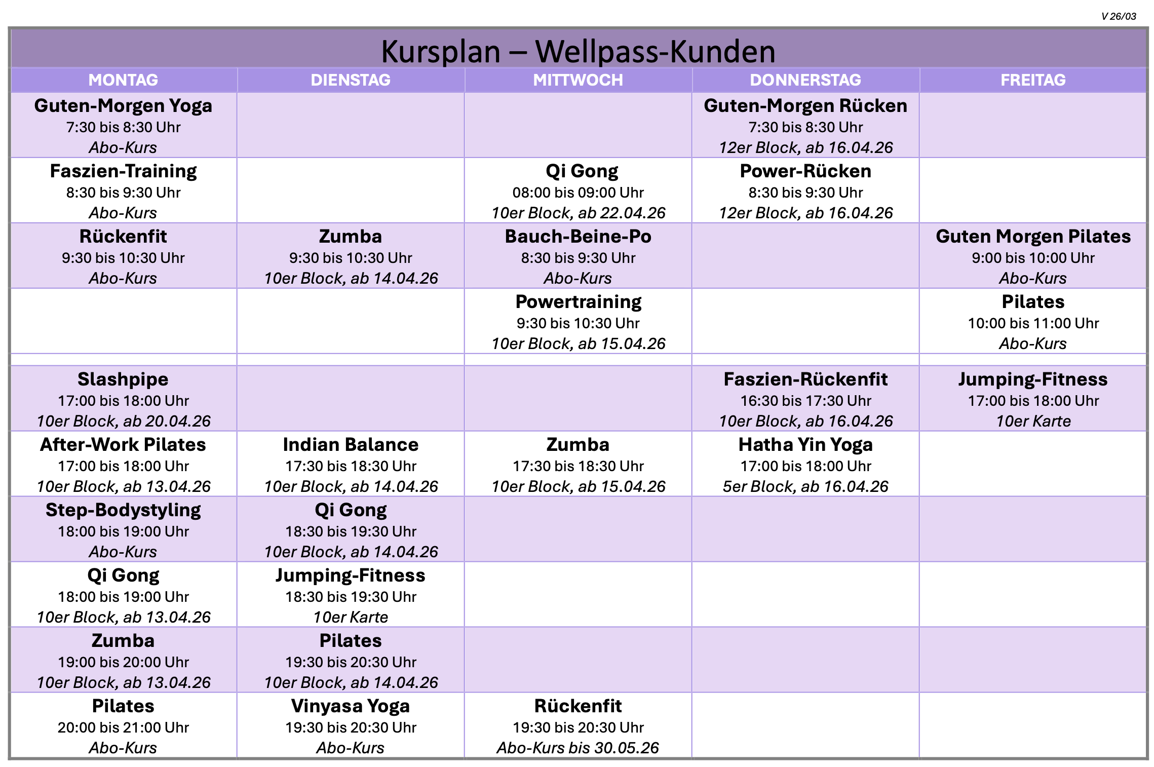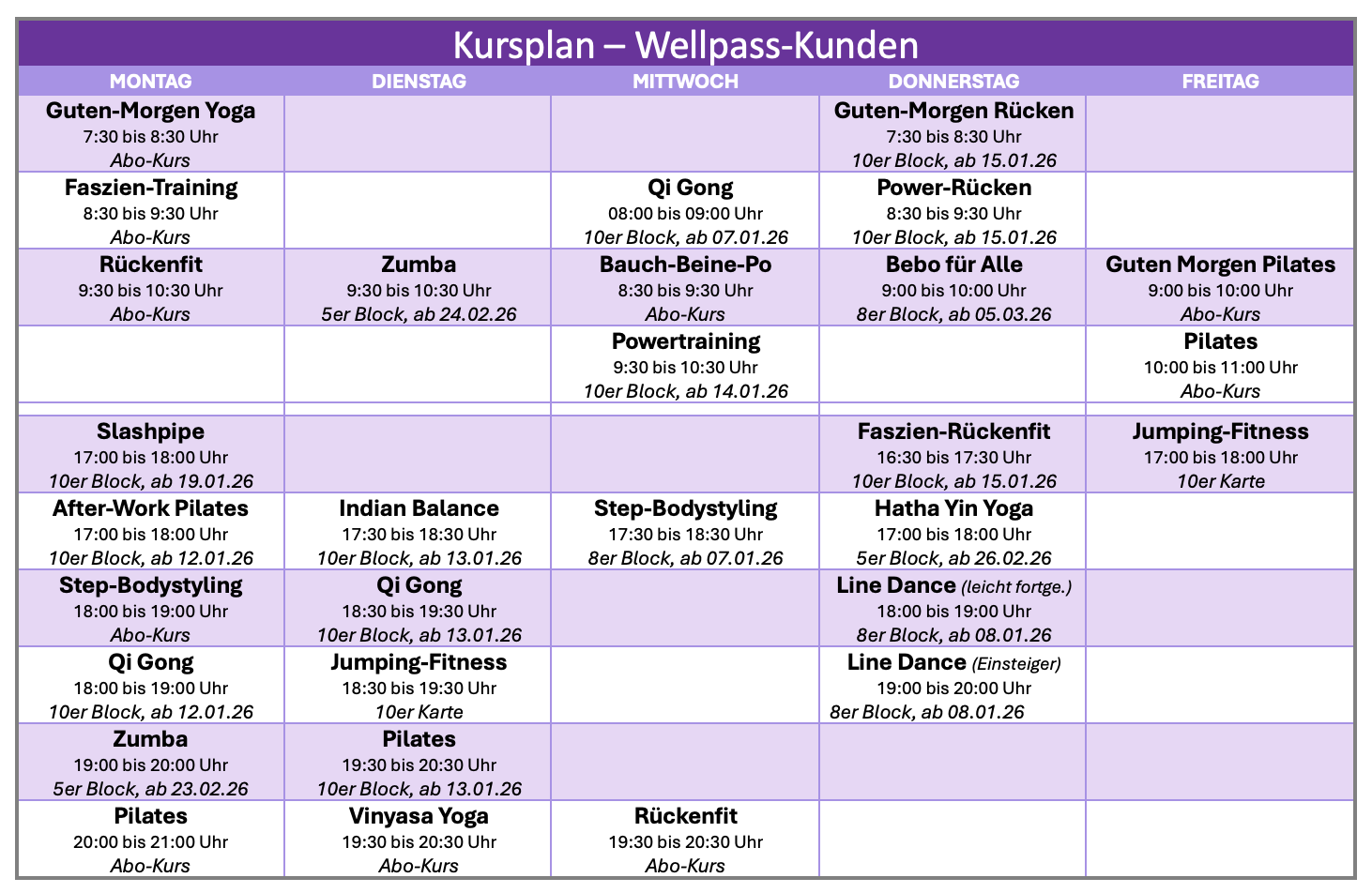 Nur diese Kurse können von unseren Wellpass-Kunden gebucht werden: