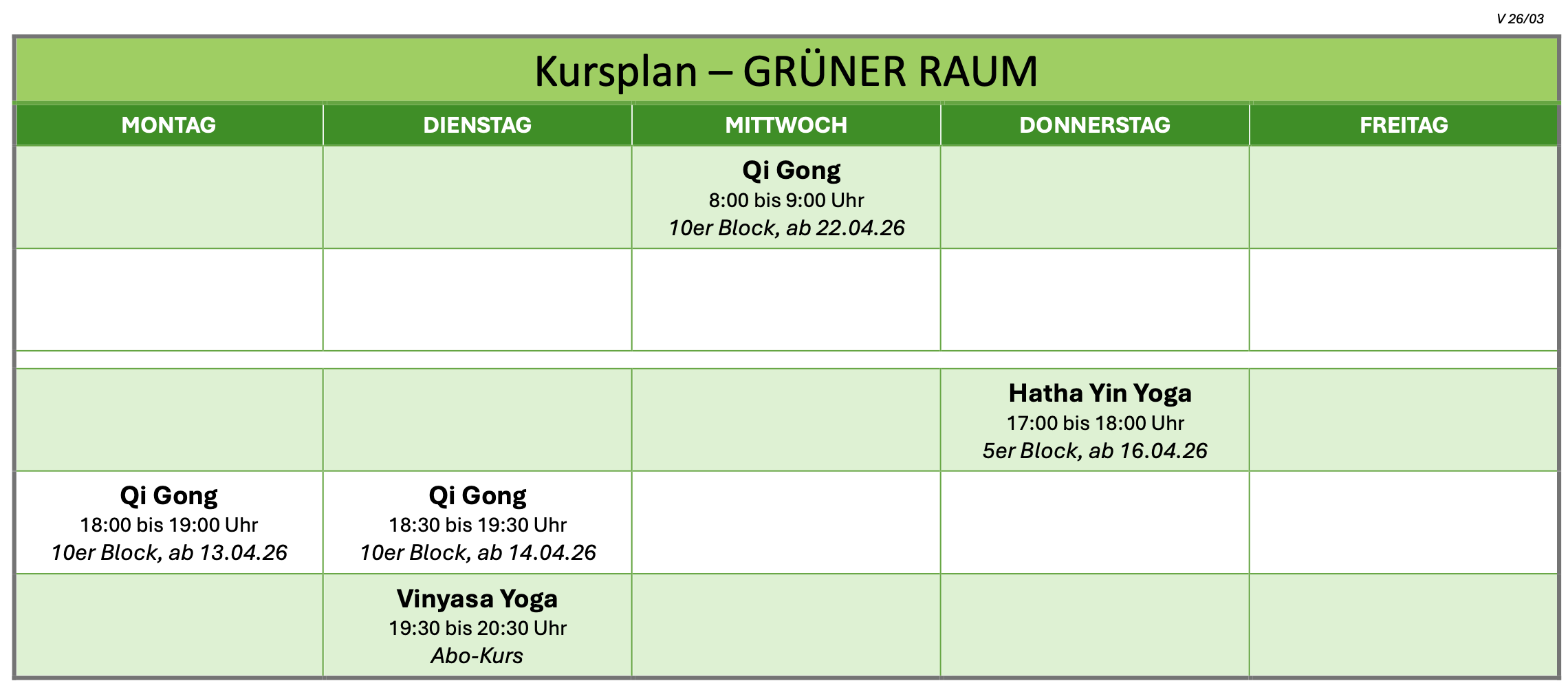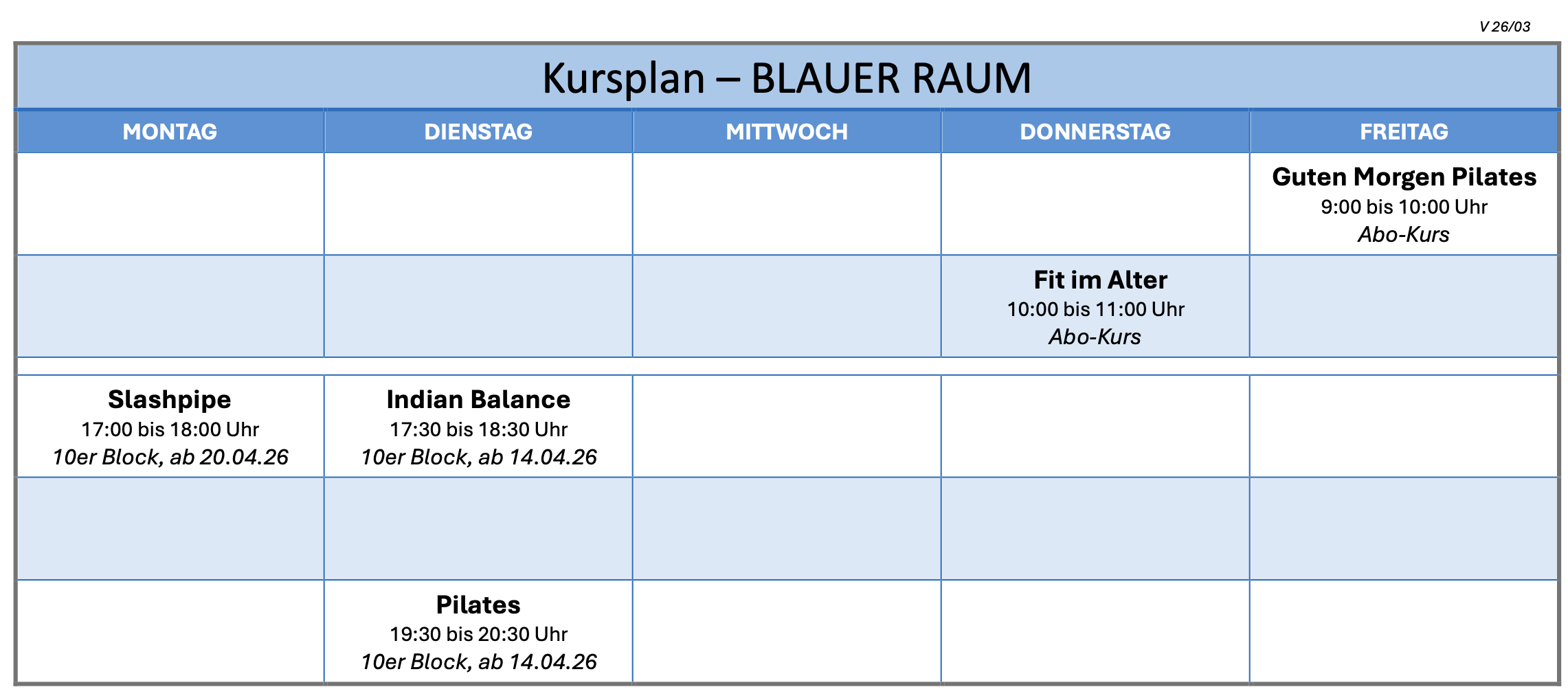 Info: Blockkurse haben in der Regel in den Ferien Pause!